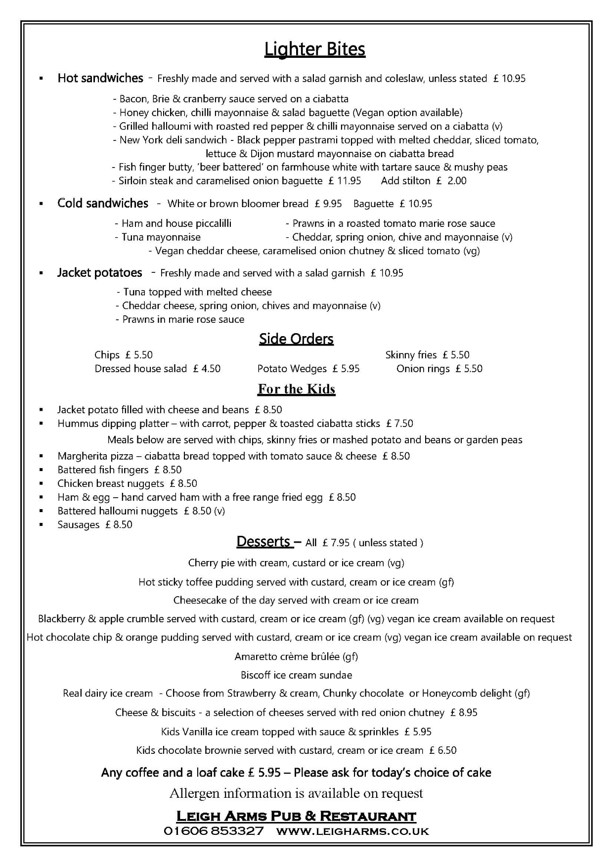 We are proud and more than happy to be able to cater to anyone, if you or anyone in your party have any dietary or allergen requirements please let us know upon booking or when you come to order.